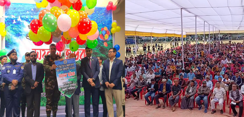 বান্দরবান পার্বত্য জেলা পরিষদ চেয়ারম্যান প্রফেসর থানজামা লুসাই বেলুন ও পায়রা উড়িয়ে কর্মসুচির উদ্বোধন করেন।