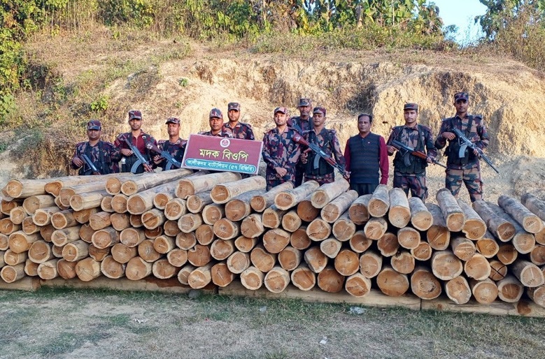 থানচিতে বিজিবির অভিযানে অবৈধ কাঠ জব্দ