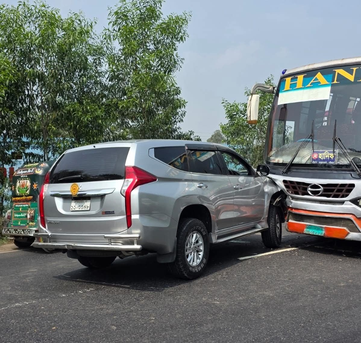চেয়ারম্যানের সরকারি গাড়ি চালক মোহাম্মদ মোরশেদ জানান, সড়কে ওভারটেক করতে গিয়ে চট্টগ্রাম থেকে ছেড়ে আসা হানিফ পরিবহনের একটি বাস জেলা পরিষদ চেয়্যারম্যানের সরকারি পাজেরো জীপটিকে মুখোমুখি ধাক্কা দেয়। এতে গাড়ির সামনের দিক মারাত্মকভাবে ক্ষতিগ্রস্ত হয়।