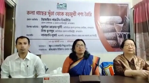 বাংলাদেশ ক্ষুদ্র ও মাঝারি শিল্প ফাউন্ডেশন (এসএমইএফ) এর উদ্যোগে কলা গাছের আঁশ থেকে সুতা তৈরি ও তা দিয়ে বিভিন্ন হস্তশিল্প পণ্য উৎপাদন বিষয়ক ৫দিনব্যাপী প্রশিক্ষণ কর্মশালা বৃহস্পতিবার ২৫ আগস্ট থেকে…