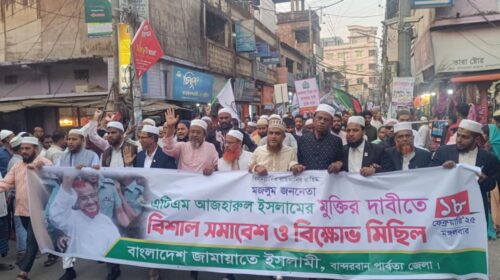 বাংলাদেশ জামায়াতে ইসলামীর সাবেক কেন্দ্রীয় ভারপ্রাপ্ত সেক্রেটারি জেনারেল এটিএম আজহারুল ইসলামের মুক্তির দাবিতে বান্দরবান শহরে বিক্ষোভ মিছিল হয়েছে। মঙ্গলবার ১৮ ফেব্রুয়ারি বিকেলে বান্দরবান জেলা জামায়াত এই কর্মসূচির আয়োজন করে। দুপুর…